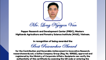 TS. Nguyễn Văn Long được vinh danh “Best Researcher Award” (Nhà nghiên cứu xuất sắc nhất) tại Giải thưởng Nghiên cứu Quốc tế năm 2025