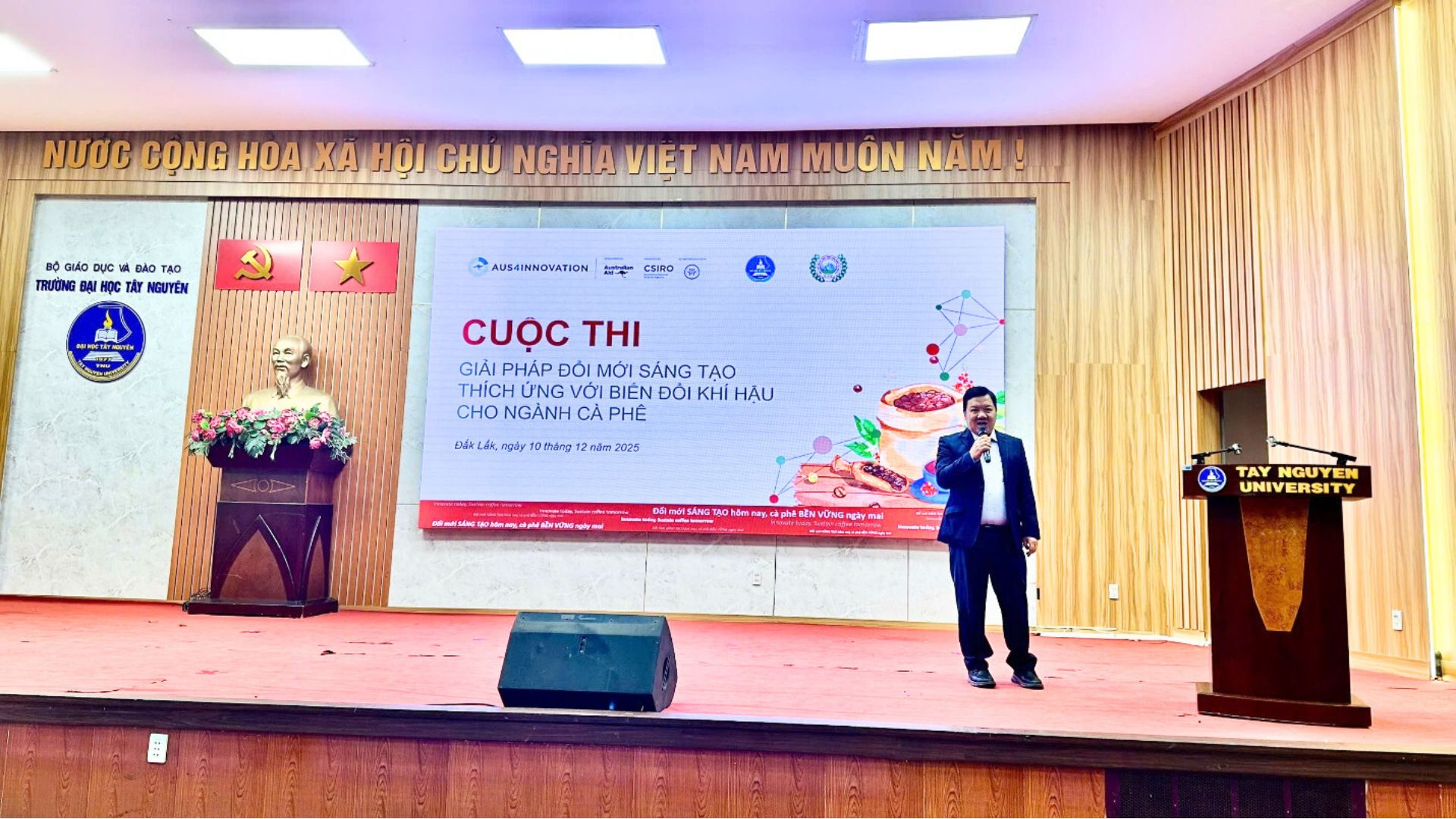 Viện Khoa học Kỹ thuật Nông Lâm nghiệp Tây Nguyên đồng hành cùng chương trình “Giải pháp Đổi mới sáng tạo thích ứng với Biến đổi khí hậu” nhân ngày cà phê Việt Nam 10/12/2025(15/12/2025)