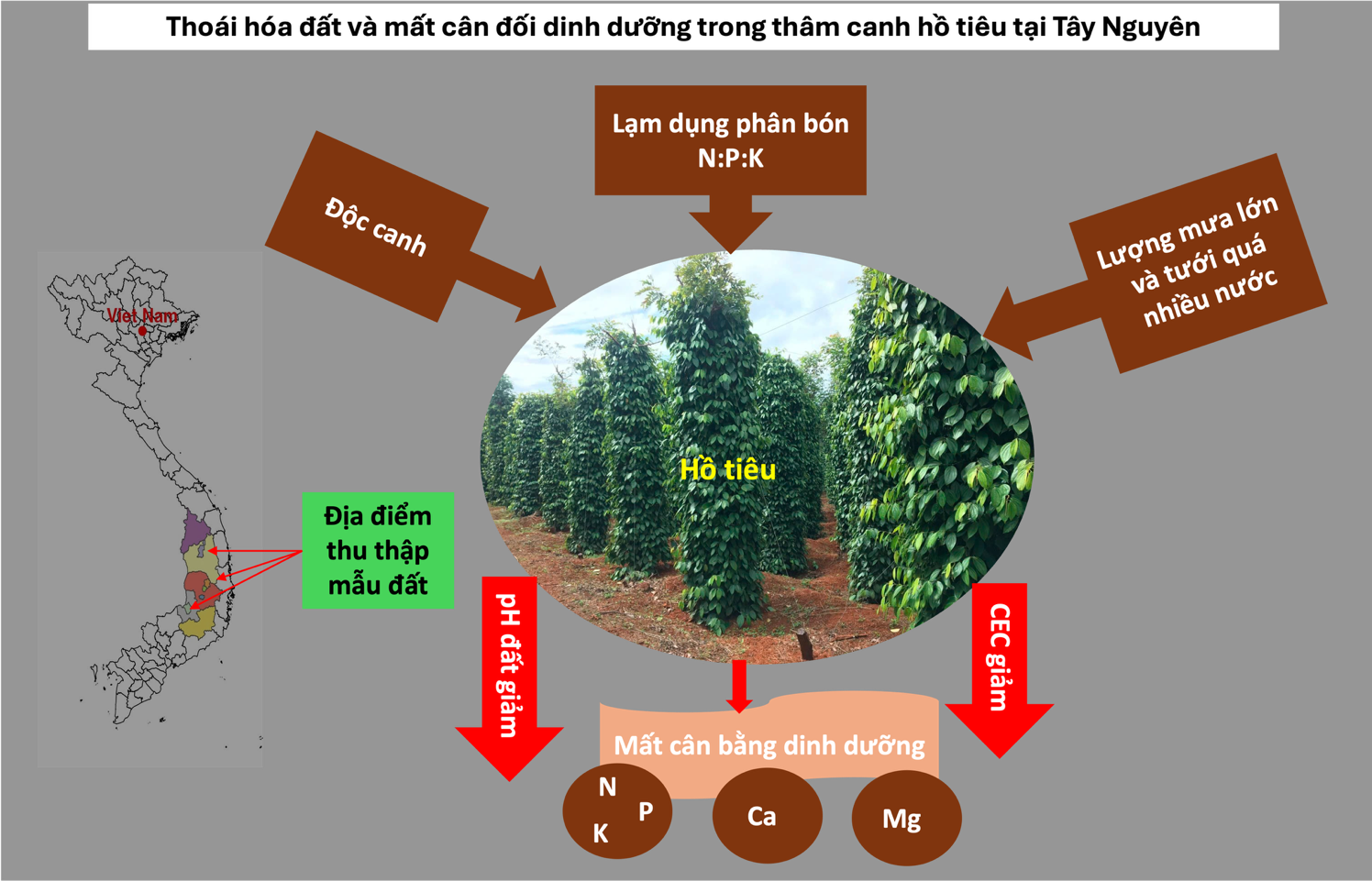 Tóm tắt bài báo: Thoái hóa đất và mất cân đối dinh dưỡng trong thâm canh hồ tiêu tại Tây Nguyên