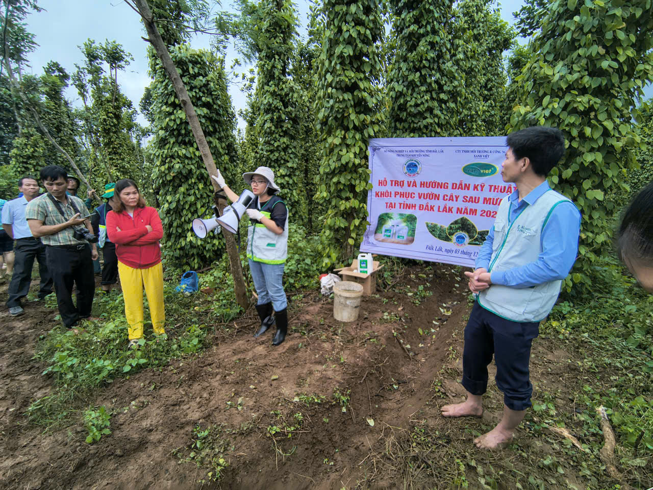 Tại sự kiện, WASI tham gia cùng các đơn vị chuyên môn, doanh nghiệp và chính quyền địa phương, trực tiếp hướng dẫn tại hiện trường các quy trình kỹ thuật phục hồi và chăm sóc cây hồ tiêu, sầu riêng, cà phê, … sau bão lũ. Bên cạnh đó, WASI cũng giải đáp thắc mắc, trao đổi trực tiếp với bà con về các mô hình, giải pháp phù hợp điều kiện từng vườn.