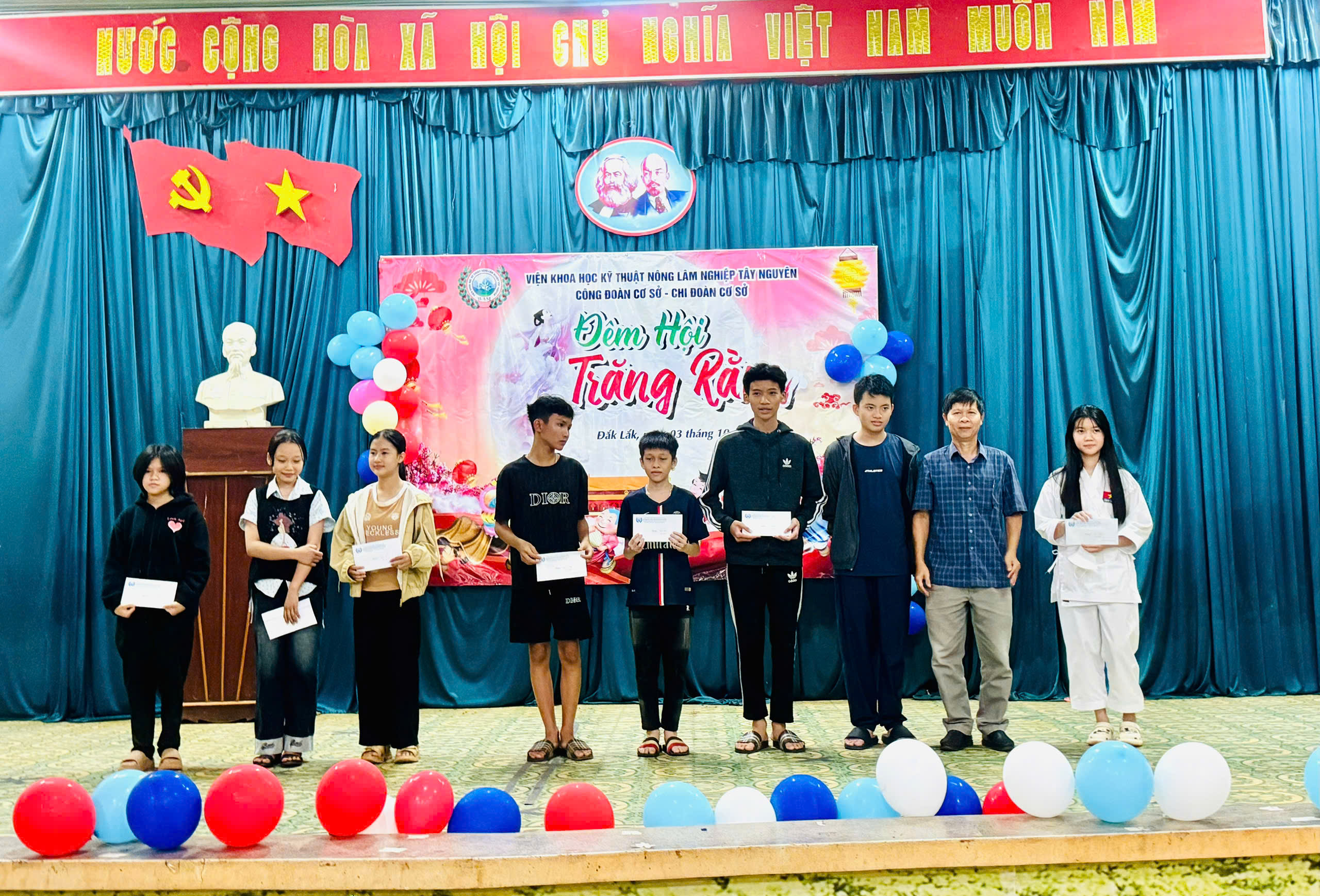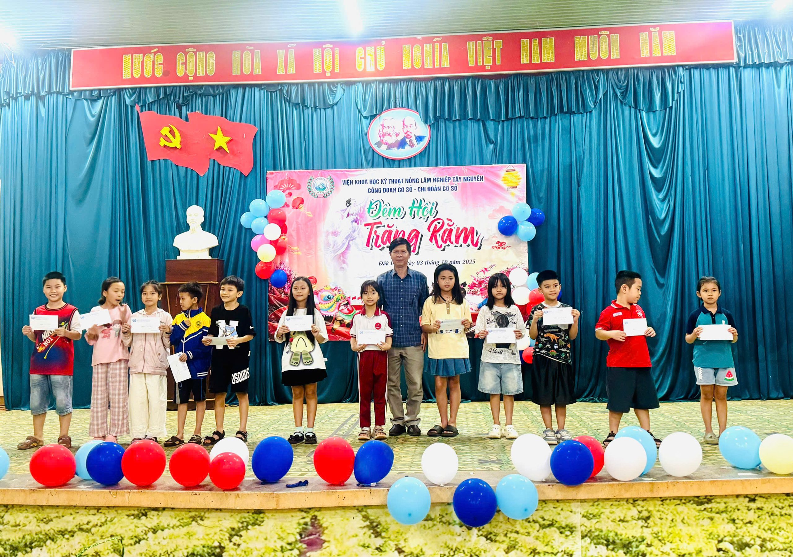 Hoà chung với không khí rộn ràng ngày Tết Trung thu và được sự quan tâm nhất trí của Đảng uỷ Viện Khoa học Kỹ thuật Nông Lâm nghiệp Tây Nguyên, Lãnh đạọ Viện, Lãnh đạo BCH công Đoàn cơ sở Viện, BCH Chi đoàn Cơ sở viện đã tổ chức chương trình Đêm hội trăng rằmkết hợp vinh danh, phát phần thưởng cho các con em cán bộ công nhân viên chức và người lao động của Viện đạt thành tích học tập và rèn luyện tốt trong năm học 2024 – 2025.